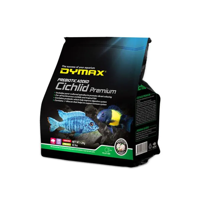 A high-quality, nutritionally balanced diet specially formulated for cichlids of all sizes. These slow-sinking pellets provide premium proteins, essential vitamins, and natural carotenoids to promote vibrant coloration, healthy growth, and optimal body form. Highly digestible and palatable, Dymax Cichlid Premium Pellets ensure maximum nutrient absorption while minimizing waste, helping maintain clean, clear aquarium water. Perfect for daily feeding to support the health, vitality, and beauty of your cichlids.